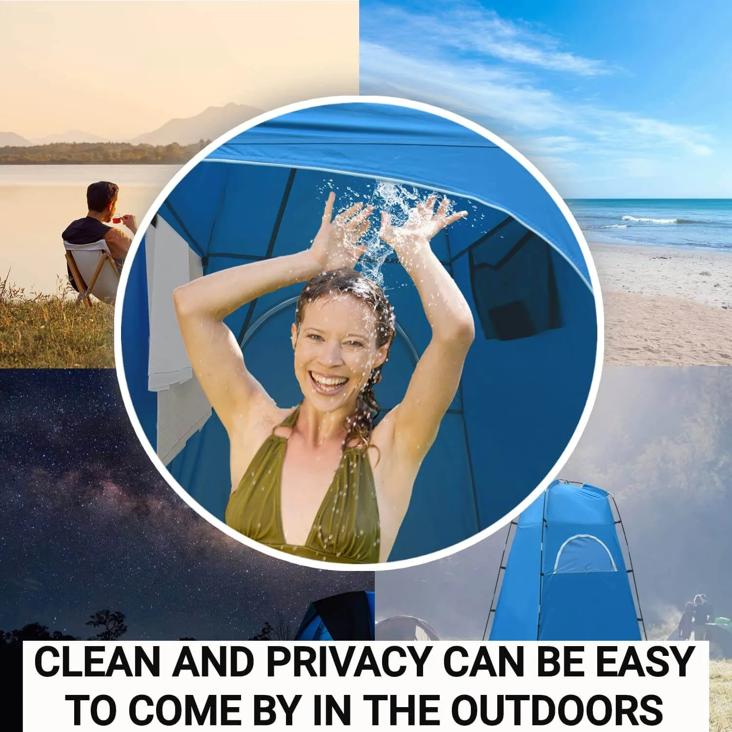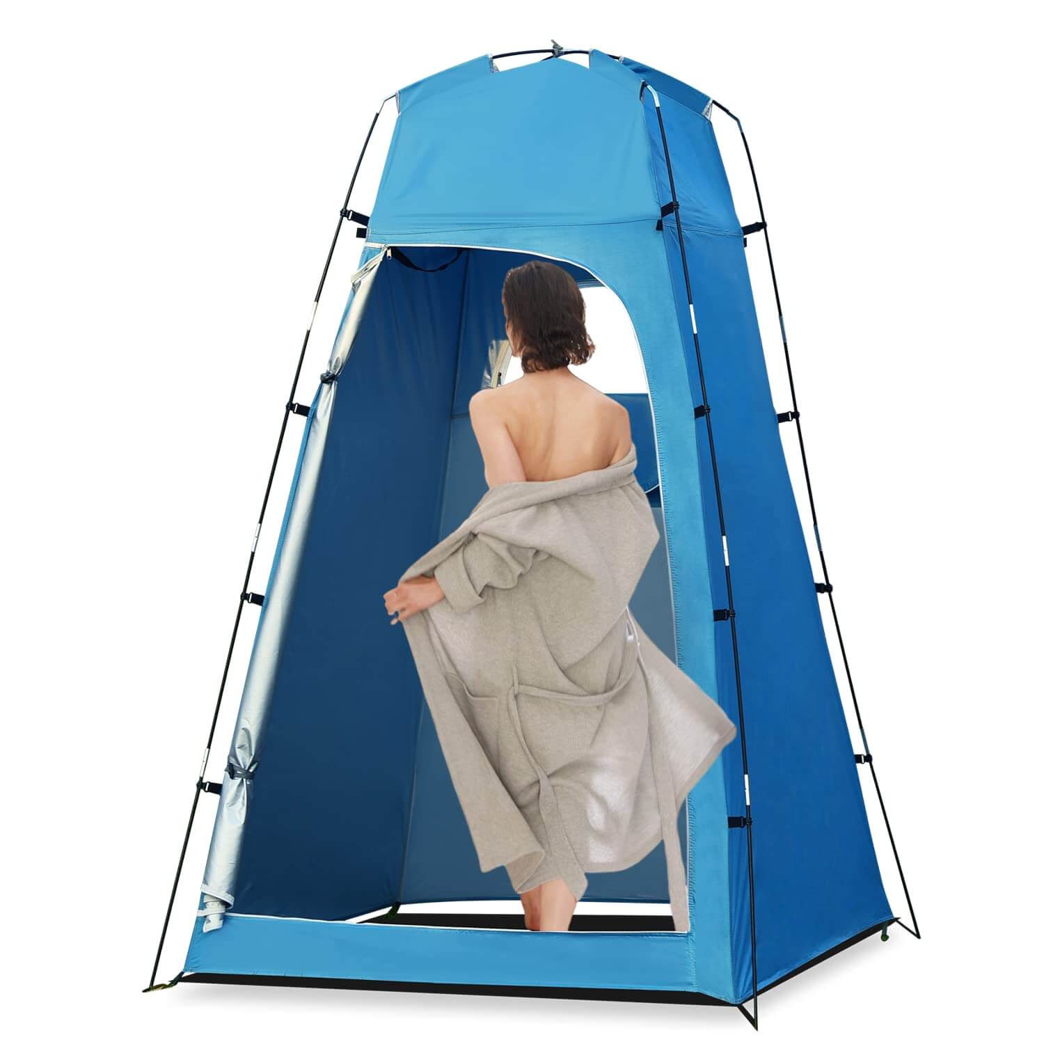 PROTECT PRIVACY. The zippered back window lets you adjust ventilation and privacy. Sliver-coated polyester makes the real opaque privacy shower tent. The shower tent is weatherproof and protect against the elements such as rain, wind, and sunlight.