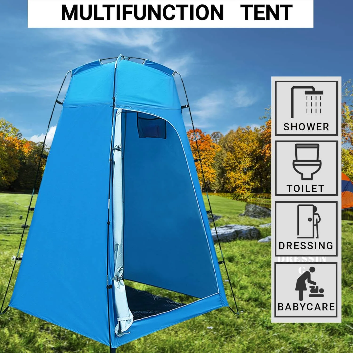 EXTRA-ROOMY FOR MULTIUSES: With a 4.2-foot wide floor, and ceilings over 6.8 feet tall, this camping shower tent allows you to stand up and stretch out inside. It’s not only cover for when you need to change your clothes, shower or do other things that require some shelter such as portable toilet and outdoor fishing.